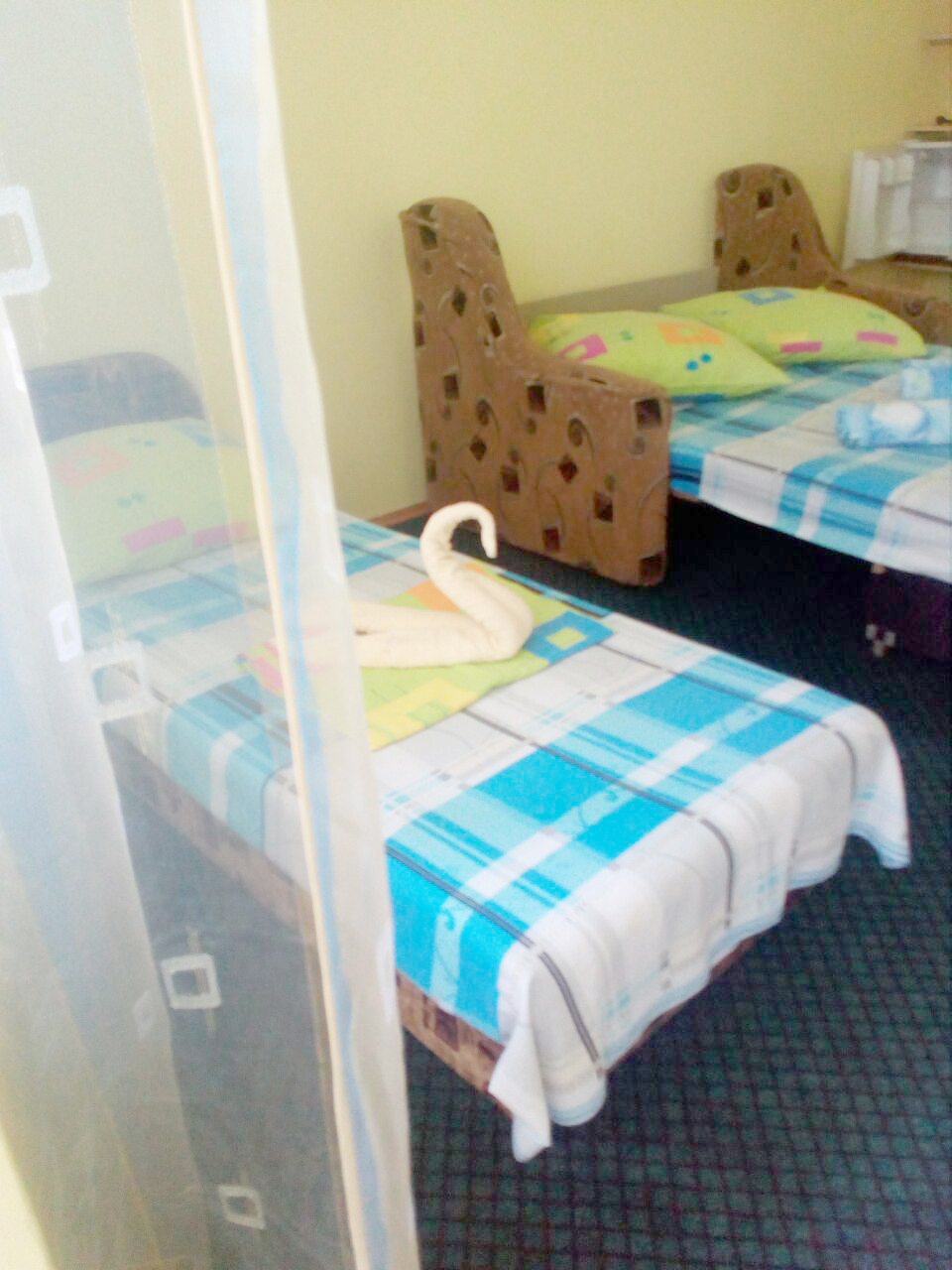 Номер для 4 человек. Все удобства. В наших номерах имеется душ, туалет, раковина, мыло, полатенце, освежитель воздуха, фен, туалетная бумага, горячая и холодная вода (круглые сутки), холодильник.